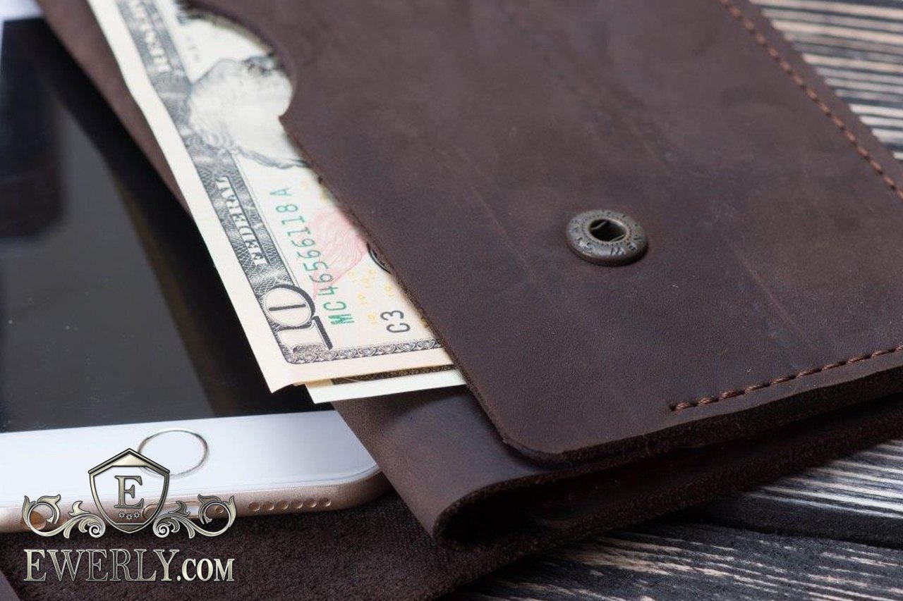 Чоловіче шкіряне портмоне - клатч коричневий 11019DJ